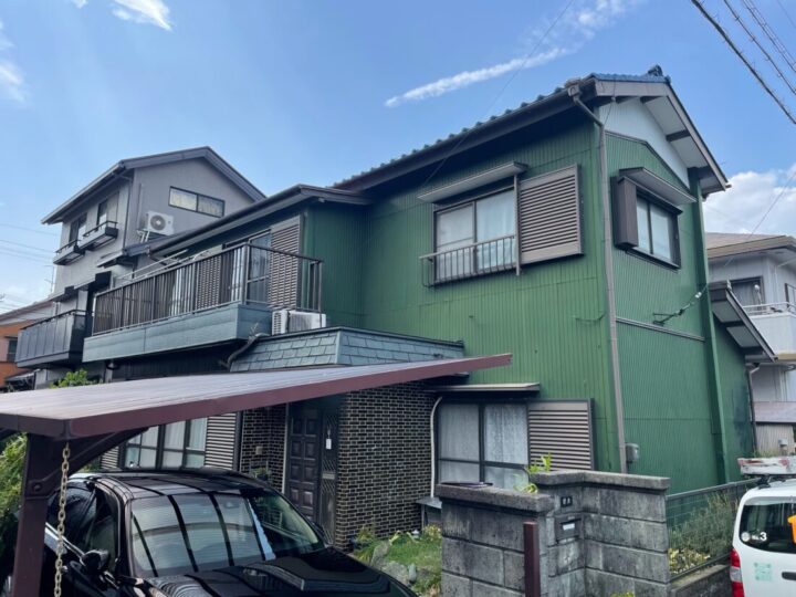瓦棒屋根の上塗り2回目を実施しました。現調時には、紫外線や風雨の影響で塗膜の劣化・退色が確認され、このまま放置すると錆の発生につながる状態でした。下地処理はケレン作業を丁寧に行い、旧塗膜や錆を除去したうえで、防錆効果の高い下塗り材を使用しています。上塗り2回目では、塗膜の厚みを確保し、耐候性と防水性を高めるよう慎重に施工しました。