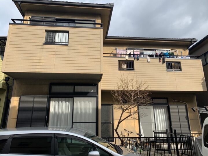 庇塗装の上塗り2回目を行いました。1回目塗装後の塗膜状態を確認し、ムラや塗り残しが出ないよう塗布量を調整しながら丁寧に施工しています。庇は雨風や紫外線の影響を受けやすい箇所のため、塗膜に十分な厚みを持たせることで耐候性・防水性を向上させました。細部まで均一に仕上げ、美観と耐久性の両立を図っています。
