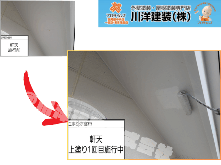 軒天塗装(上塗り1回目)