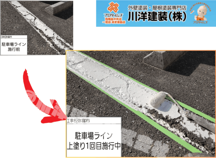 駐車場ライン塗装(上塗り1回目)