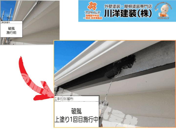 破風板塗装(上塗り1回目)